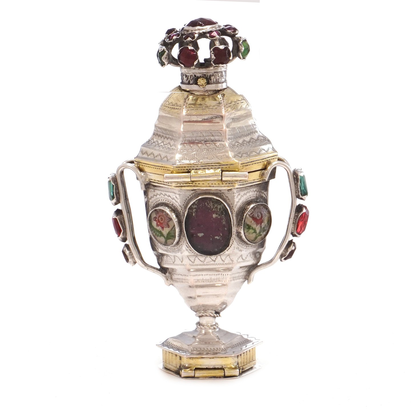 Hovedvandsæg i delvist forgyldt sølv med utydeligt mesterstempel. Tønder ca. år 1820. H. 10cm