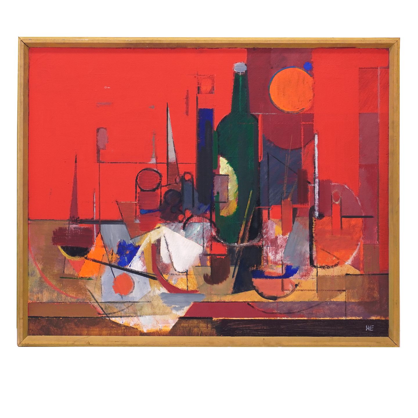Helge Ernst, 1916-91, olie på lærred. "Den Grønne Flaske"
