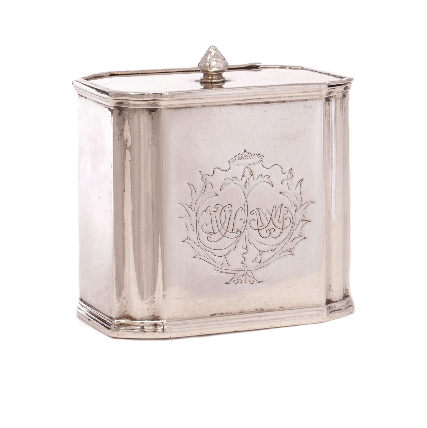 Sjælden Regence tedåse med skydelåg i sølv udført af Johan Mehl, Viborg, 1725-65