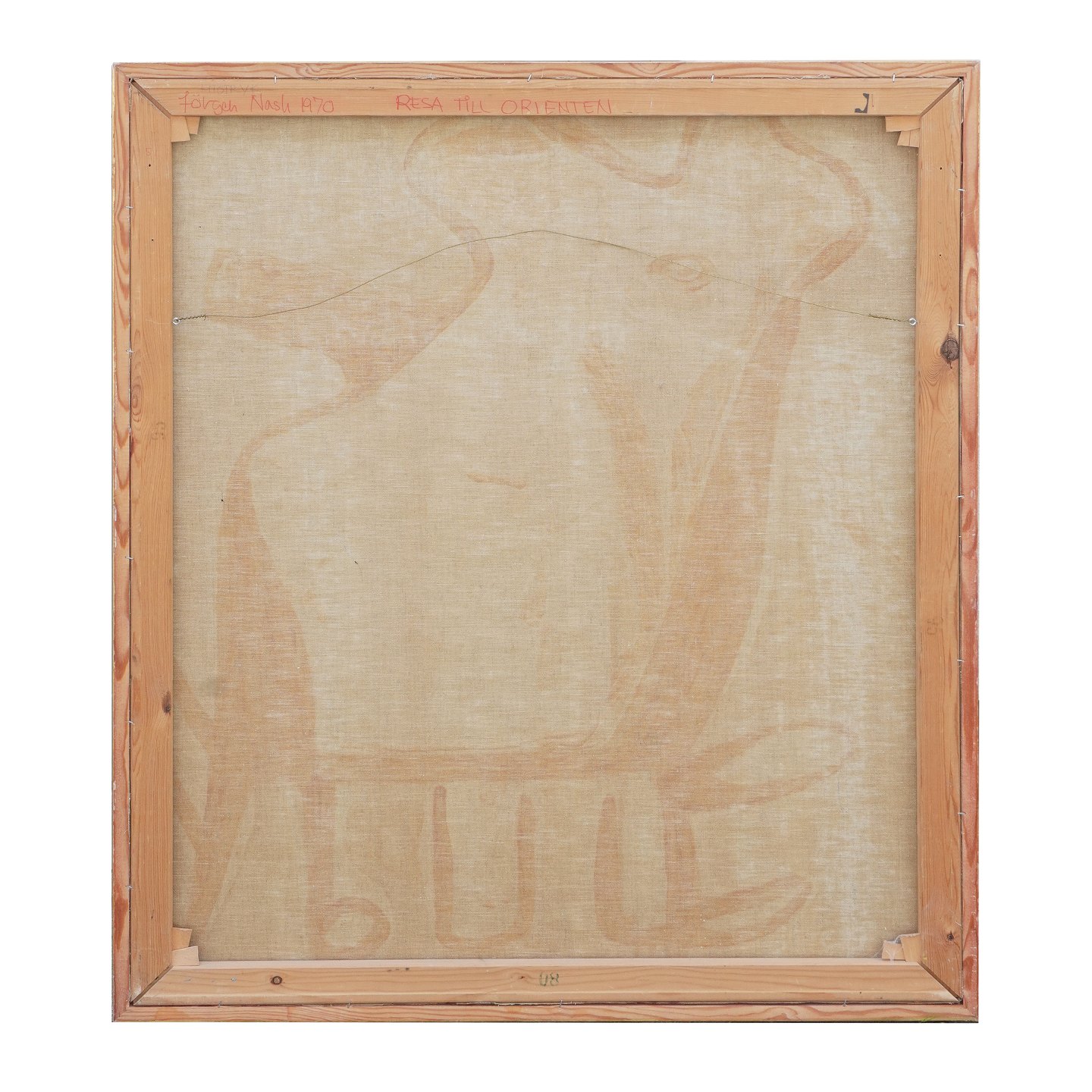 Jørgen Nash maleri. Jørgen Nash, 1920-2004, olie på lærred. "Resa till Oreinten". Signeret og dateret 1970. Lysmål: 94x79cm. Med ramme: 99x84cm
