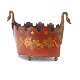 Vergoldeter und rotdekorierter Jardieniere/Blumenübertopf aus Metall