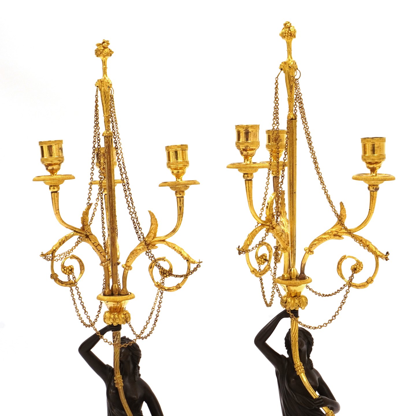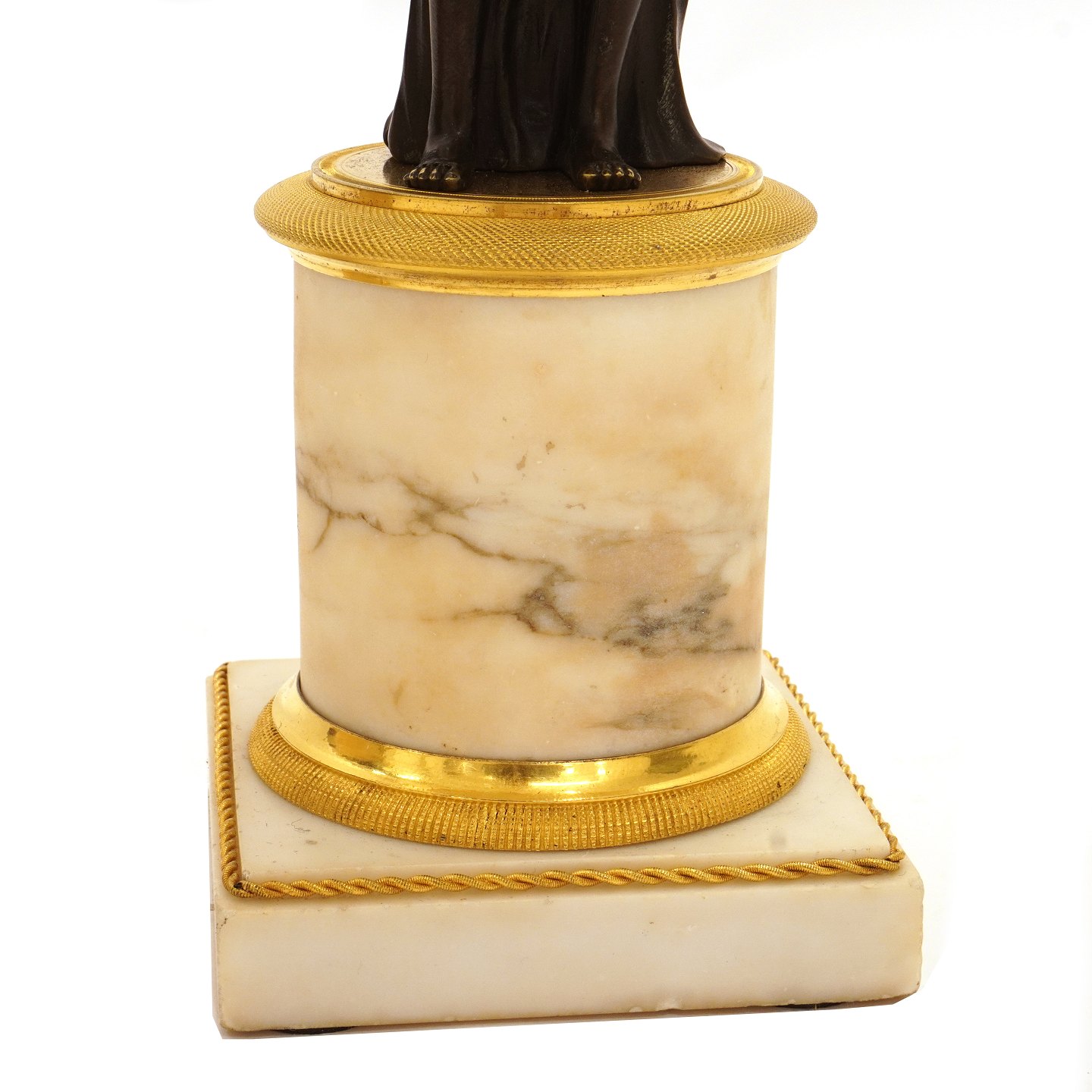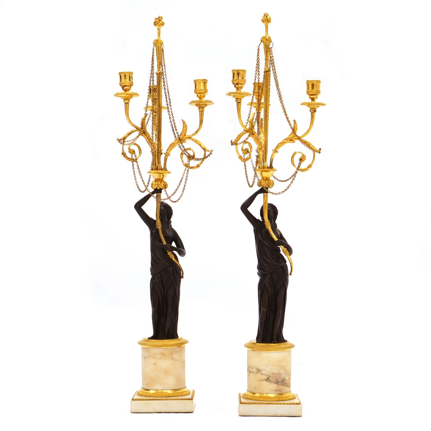 Ein Paar grosse feuervergoldete Bronzekandelaber mit Marmormontierung