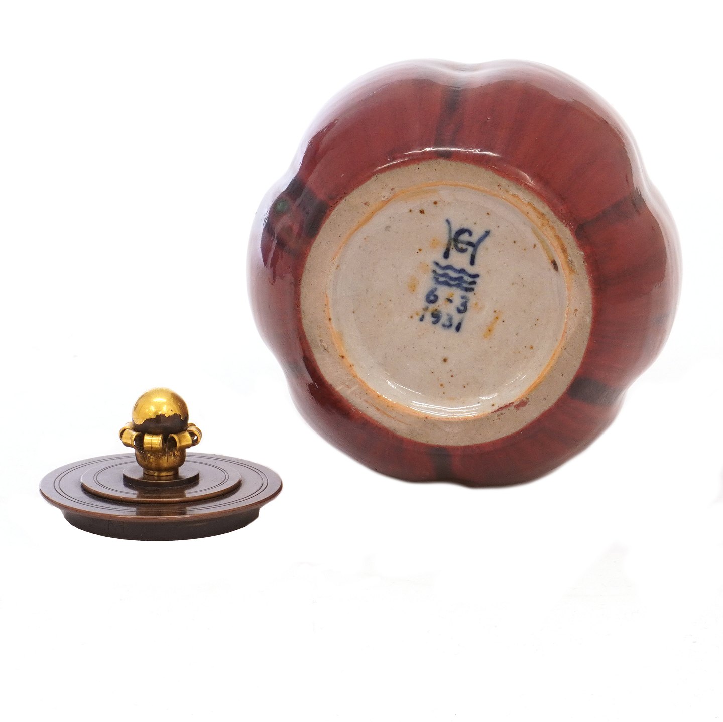 Carl Halier stentøjsvase med okseblodsglasur og bronzelåg af Knud Andersen. Signeret Carl Halier 6-3 1931. H: 18cm