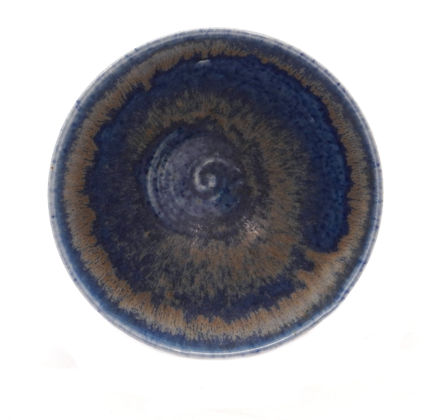 Saxbo skål med blågrå glasur model 3. Signeret Saxbo. H: 7,7cm. D: 15,5cm