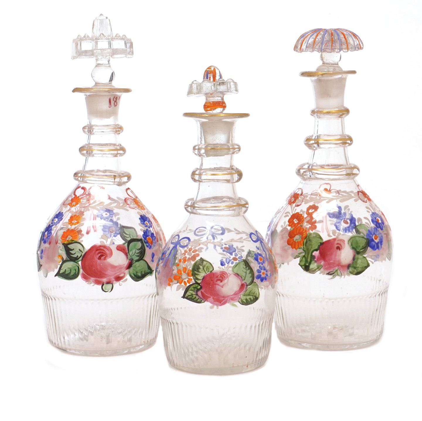 Satz von drei emailledekorierten Karaffen um 1860-80