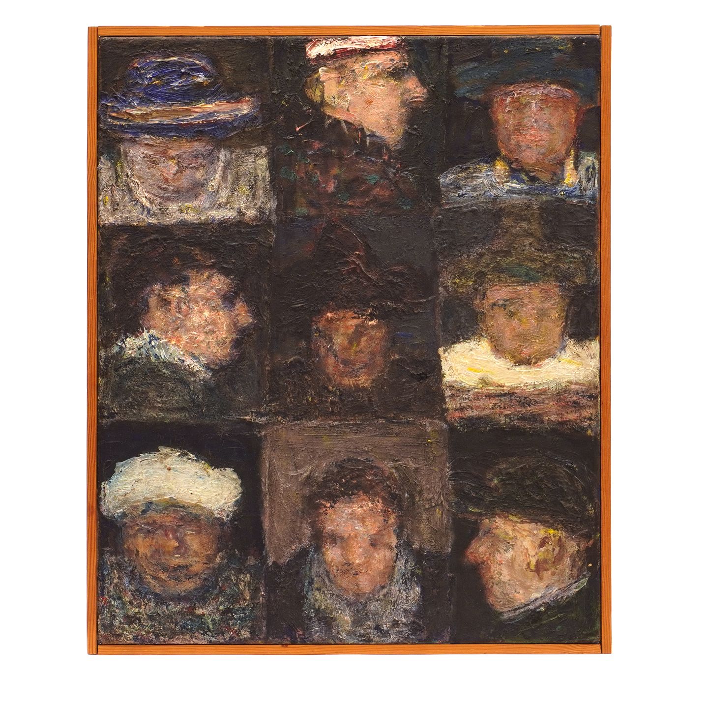 Peter Martensen, f. 1953, olie på lærred. Betitlet "9 Klovner"