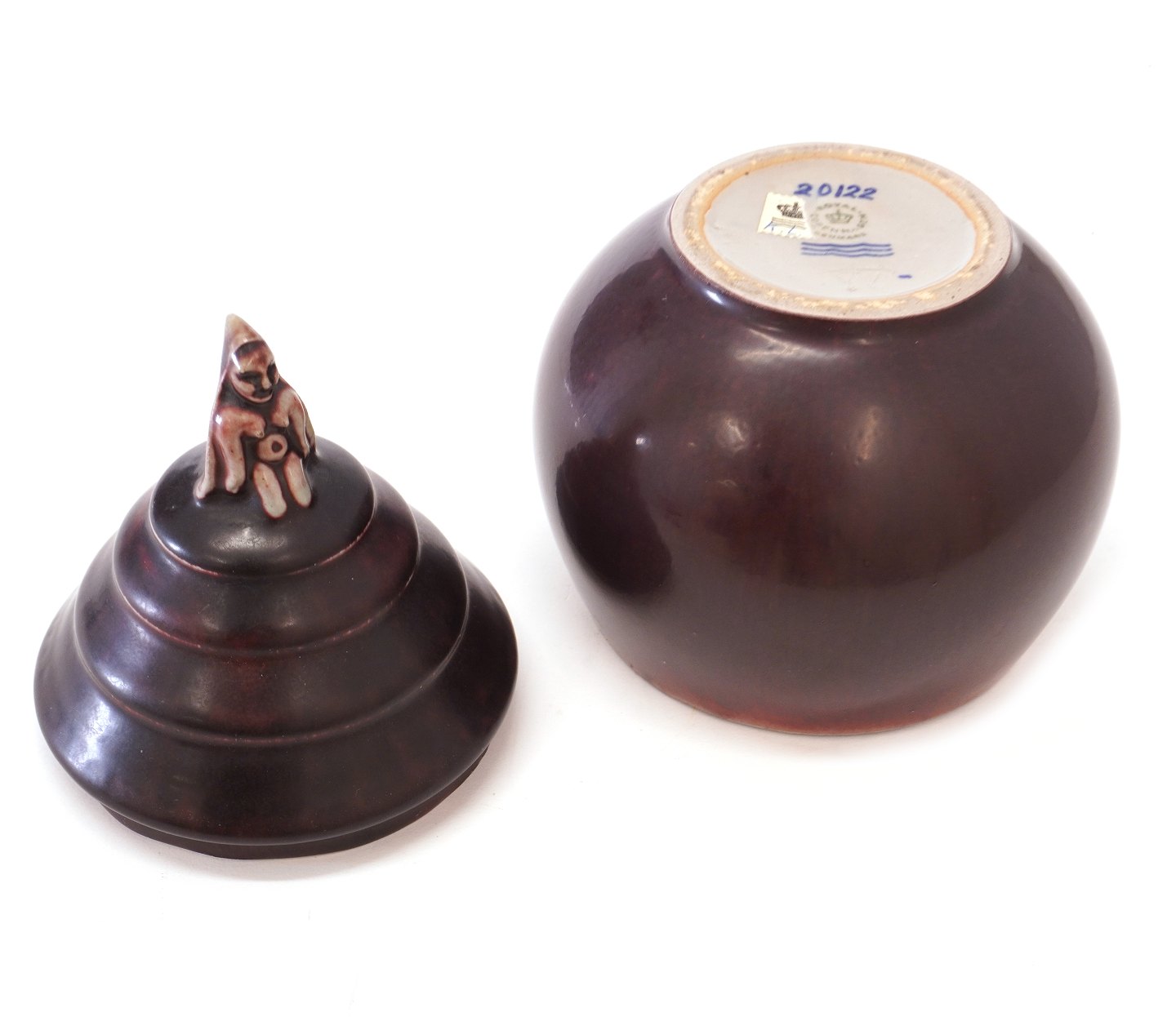 Bode Willumsen lågkrukke i stentøj med lågknop i form af kvindelig figur