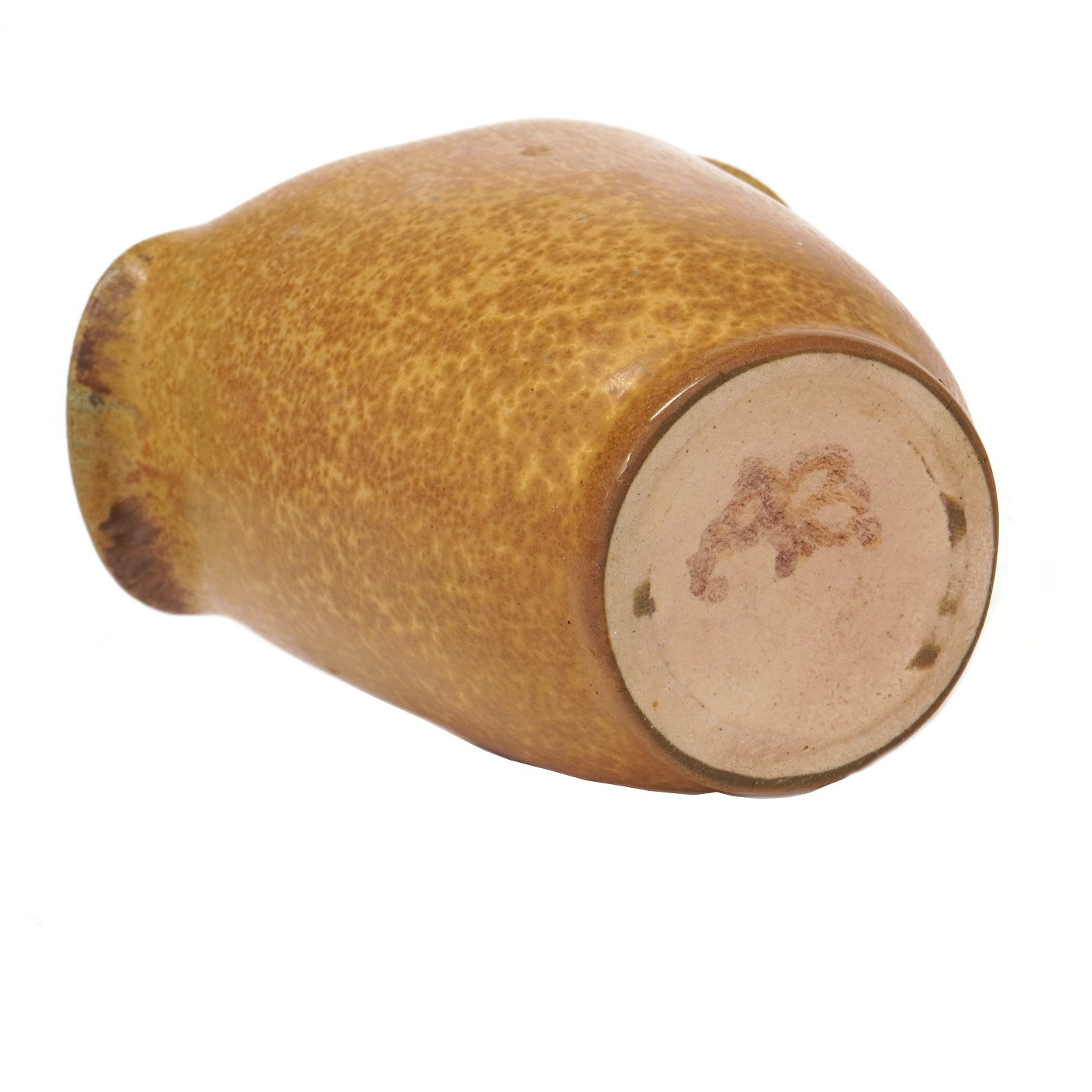 Arne Bang stentøjsvase i stentøj med spættet okkerfarvet glasur signeret AB