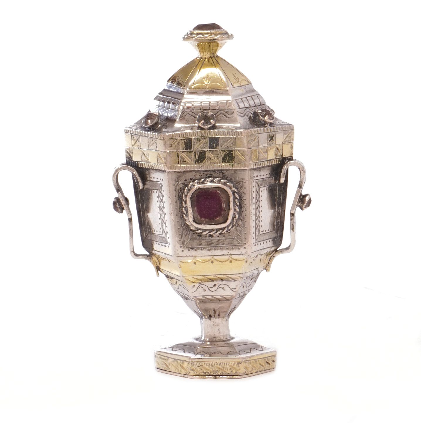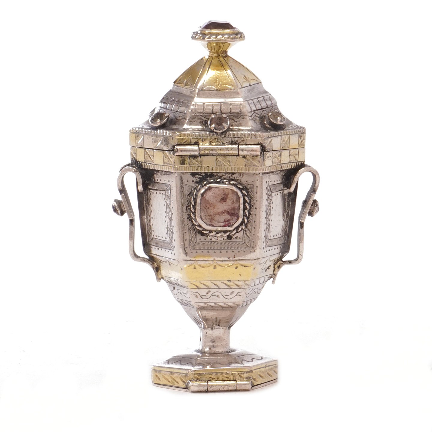 Hovedvandsæg i delvist forgyldt sølv udført af Christian Andersen, Leck, ca. år 1800-20